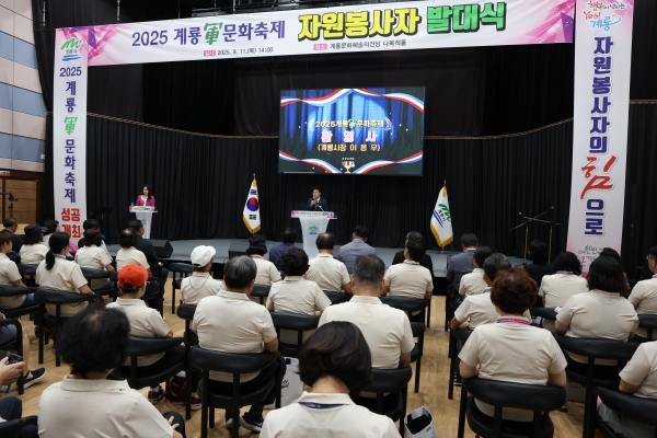 [충청25시] 계룡시는 지난 11일 계룡문화예술의전당 다목적홀에서2025계룡軍문화축제 자원봉사자 발대식을 열고 행사 성공개최를 위한 본격 활동에 돌입했다고 밝혔다.