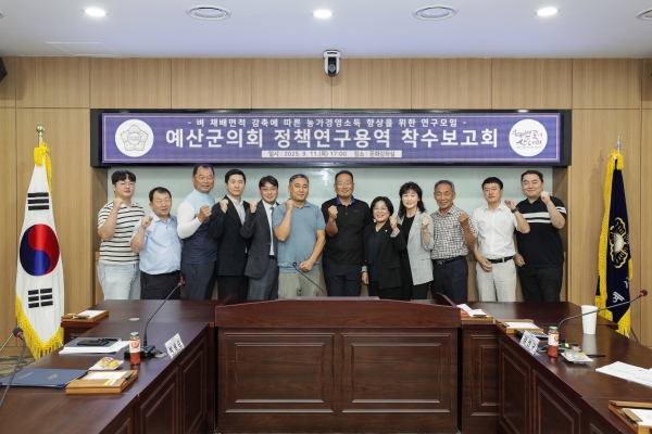 [충청25시] 예산군의회는 지난 11일 군의회 문화강좌실에서 ‘벼 재배면적 감축에 따른 농가경영소득 향상을 위한 정책연구용역’ 착수보고회를 개최했다.
