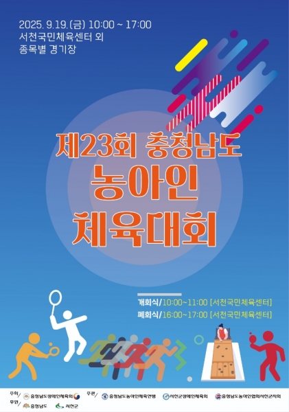 충남장애인체육회가 주최하고 충남농아인체육연맹, 서천군장애인체육회, 충남농아인협회 서천군지회 주관하는 ‘제23회 충청남도농아인체육대회’ 가 오는 19일 서천군에서 열린다.