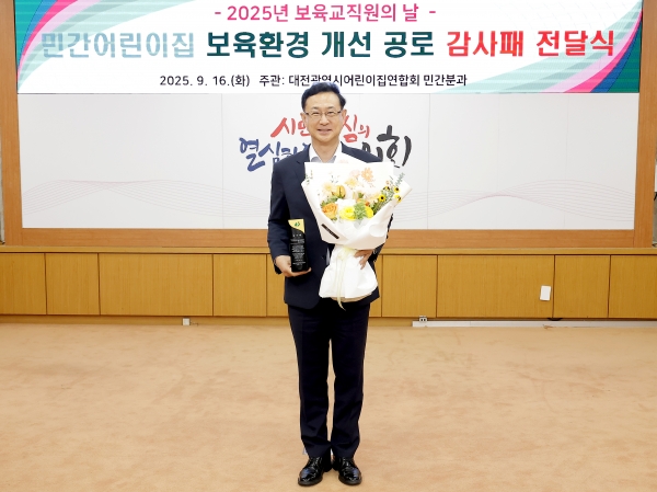 [충청25시] 대전광역시의회 민경배 의원은 9월 16일 민간 어린이집 보육환경 개선과 보육 교직원 권익 증진에 기여한 공로로 감사패를 받았다고 밝혔다.