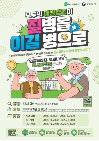 [충청25시] 논산시는 다가오는 겨울철 계절성 호흡기 질환 유행에 대비해 내년 4월 30일까지 무료 예방접종을 순차적으로 실시한다고 밝혔다.