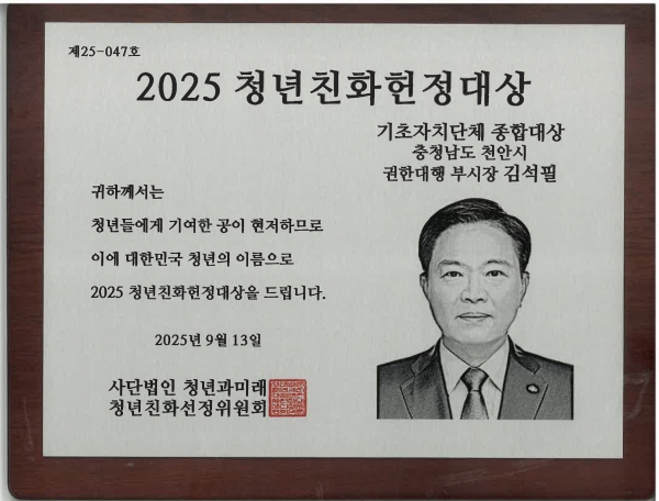 이번 수상을 통해 천안시는 명실상부한 전국 대표 청년친화도시로 자리매김하게 됐다.