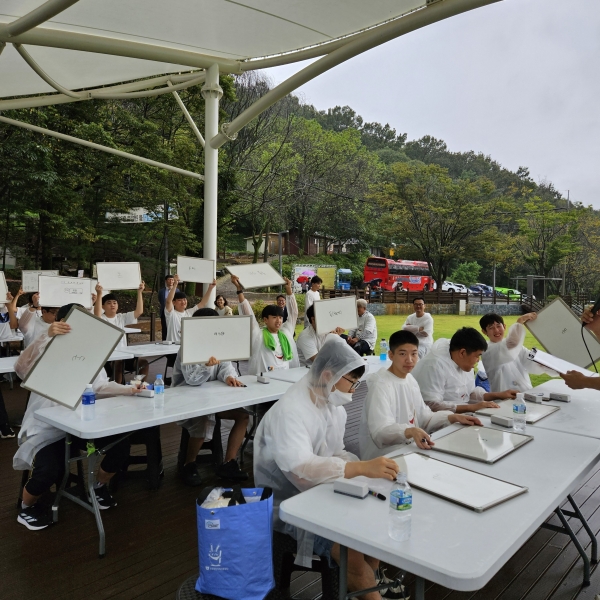 학생들은 처음에는 신발을 벗고 황톳길을 걷는 낯선 촉감에 어색해 했지만, 잘 가꾸어진 계족산의 나무 숲길을 친구들과 함께 맨발로 걸으며 자연 속에서 정서를 안정시키고 우중 산행의 특별한 정취를 느끼며 자연을 만끽했다.