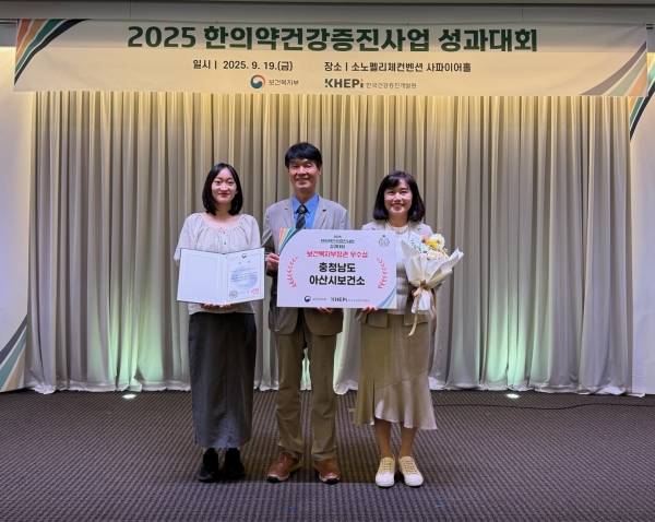 [충청25시] 아산시는 19일 서울 강남구 소노펠리체 컨벤션에서 열린 ‘2025년 한의약건강증진사업 성과대회’에서 보건복지부 장관상을 수상했다고 밝혔다.