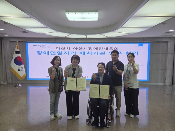 이유진 아산시 경로장애인과장은 “이번 협약은 장애인의 자립 역량 제고와 삶의 질 향상은 물론, 지역사회 전반에 포용적 고용문화를 확산시키는 전환점이 될 것”이라며 “장애인과 비장애인이 상생하는 통합적 지역공동체 구현에 최선을 다하겠다”고 밝혔다.