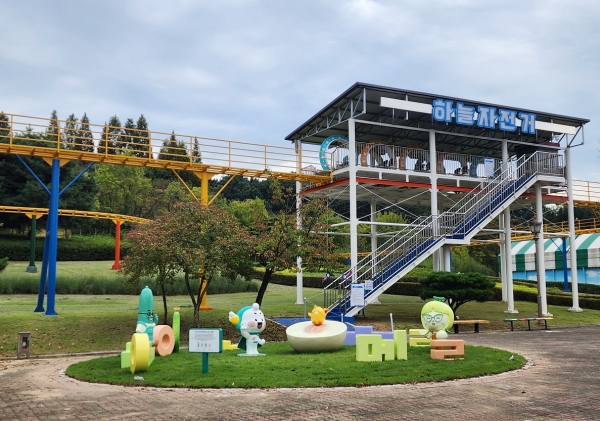 [충청25시] 천안시 동남구는 천안상록리조트 놀이공원에 천안 대표 농산물인 멜론과 오이 홍보 조형물 포토존을 설치했다고 23일 밝혔다.