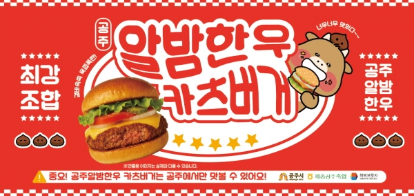 [충청25시] 공주시는 오는 28일 열리는 2025 공주백제마라톤 대회 현장에서 지역 대표 축산물인 공주알밤한우와 공주시 로컬푸드 채소를 활용한 특별 메뉴 ‘공주알밤한우 버거’를 처음으로 선보인다고 밝혔다.