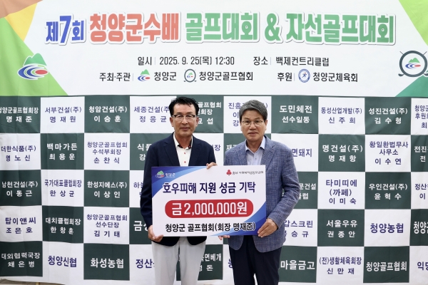 협회는 지난 25일 부여 백제 컨트리클럽에서 열린 제7회 청양군수배 골프대회를 맞아, 관내 호우피해를 입은 저소득 가구 지원을 위해 성금 200만원을 기탁했다.