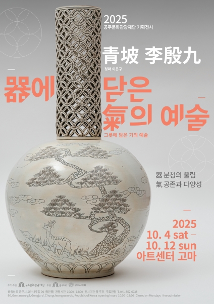 [충청25시] 공주문화관광재단은 오는 10월 4일부터 10월 12일까지 아트센터고마에서 전통과 현대를 잇는 분청의 울림과 정신을 계승해 온 청파 이은구 작가의 ‘器에 담은 氣의 예술’ 특별기획전을 개최한다.