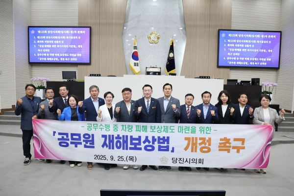 [충청25시] 당진시의회는 25일 열린 제123회 임시회 제1차 본회의에서 심의수 의원이 발의한 ‘공무원 재해보상법’ 개정 촉구 건의안을 채택했다.