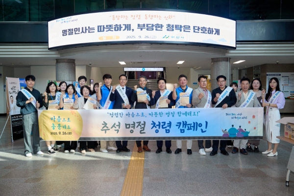 [충청25시] 아산시는 26일 추석 명절을 앞두고 출근하는 전 직원을 대상으로 청렴한 명절 문화 확산을 위한 ‘추석 명절 청렴 캠페인’을 실시했다고 밝혔다.