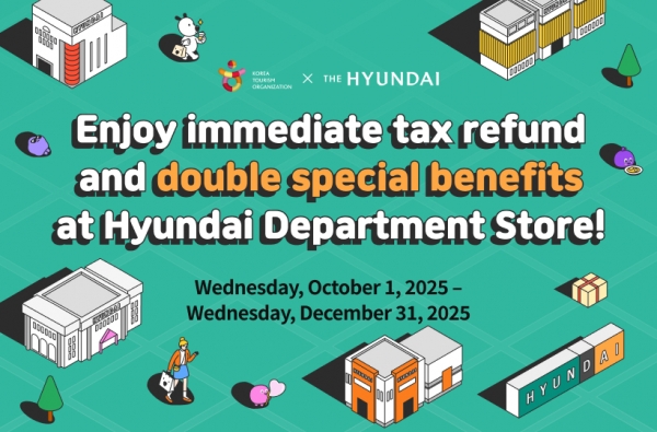 [충청25시] 한국관광공사는 부가세 즉시환급 서비스 활성화 등 외국인 관광객의 쇼핑 편의를 개선하고자 현대백화점과 함께 10월 1일부터 12월 31일까지 공동 프로모션을 진행한다.