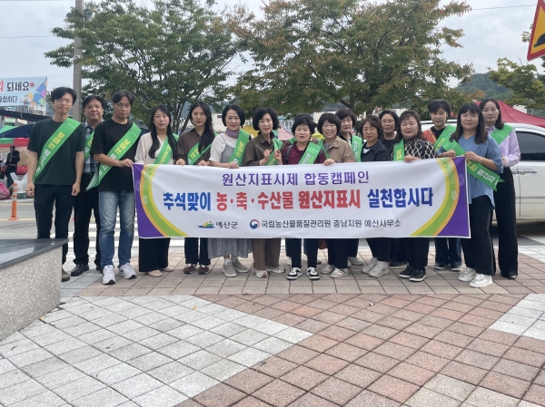 [충청25시] 예산군은 지난 9월 30일 예산시장에서 국립농산물품질관리원 충남지원 예산사무소, 소비자교육중앙회 예산군지회와 함께 올바른 농축수산물 원산지 표시 합동 캠페인을 펼쳤다.