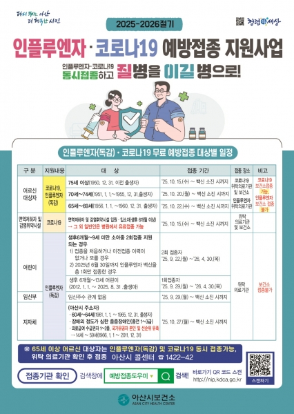 최원경 아산시보건소장은 “코로나19는 매년 새로운 변이가 발생하는 만큼 고위험군의 예방접종이 무엇보다 중요하다”며 시민들의 적극적인 참여를 당부했다.