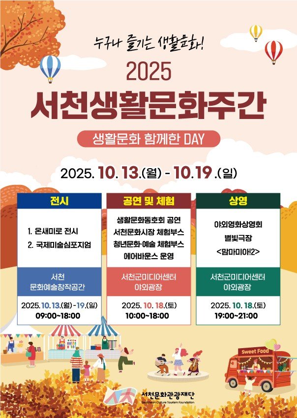 [충청25시] (재)서천문화관광재단은 오는 13일부터 일주일간 ‘2025서천생활문화주간’사업을 운영한다고 밝혔다.