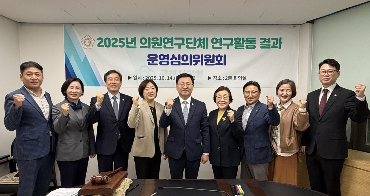 [충청25시] 구리시의회(의장 신동화)는 10월 14일 구리시의회 의원연구단체 운영 심의위원회를 개최하고 2025년 의원연구단체의 활동에 따른 결과보고서를 발표하고 심의- 의결했다.