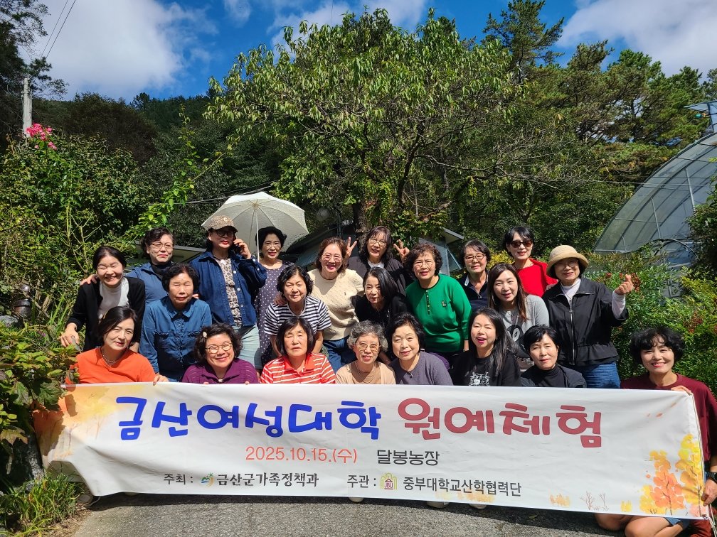 [충청25시] 금산여성대학은 지난 15일 남이면 달봉농장에서 원예 체험 프로그램을 진행했다.