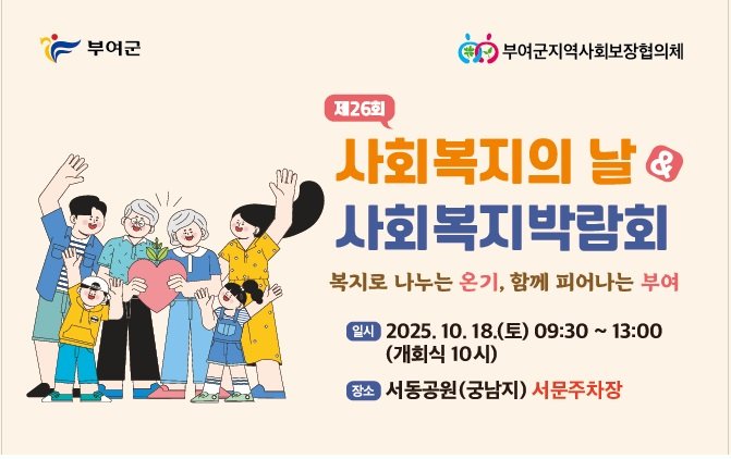 [충청25시] 부여군(군수 박정현)은 오는 10월 18일(토) 서동공원 서문주차장에서 ‘제26회 사회복지의 날 및 사회복지박람회’를 개최한다고 밝혔다.