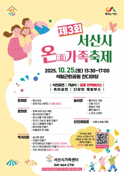 [충청25시] 충남 서산시는 오는 10월 25일 석림근린공원 잔디마당 일원에서 제3회 온가족 축제를 개최한다고 밝혔다.