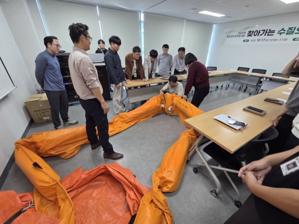 주요 교육 내용은 △수질오염사고 방제 절차 △현장 대응 사례 및 실무지침 △오염원 유입 차단 및 제거 방법 등으로 실제 사고 발생 시 즉각 대응할 수 있도록 실무 중심으로 구성됐다.