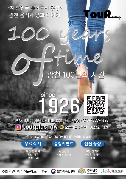‘광천 100년의 시간’은 현재 투어 참여자 모집 중으로 자세한 사항은 홍주문화관광재단 홈페이지 및 SNS에서 확인 가능하며 참가 신청 및 기타 문의는 미디어플러스, 070-7777-1685로 하면 된다.