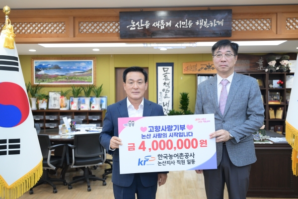 [충청25시] 논산시는 20일 한국농어촌공사 논산지사 직원 일동이 고향사랑기부금 400만원을 기탁했다고 밝혔다.