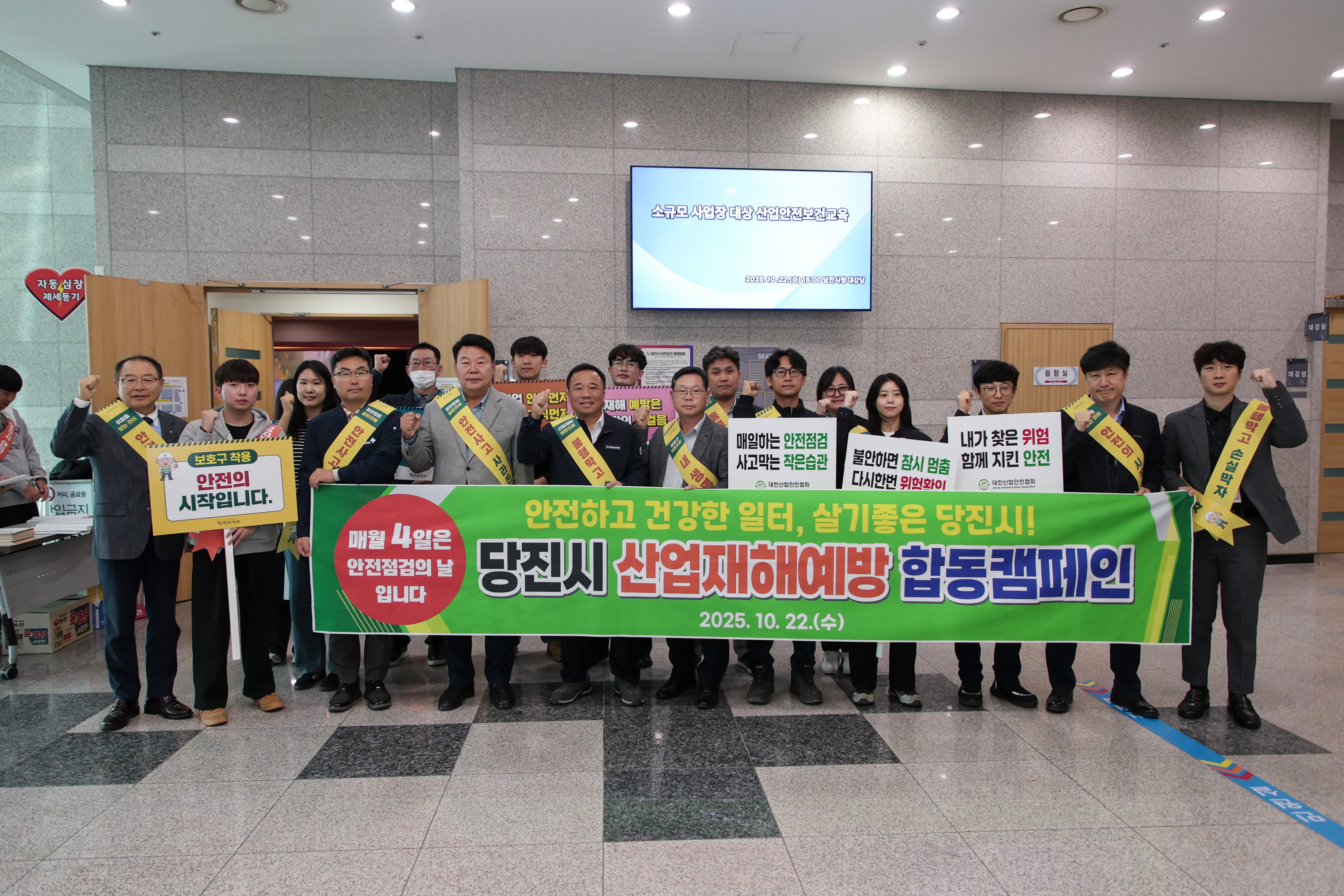 또한, 시는 교육과 함께 산업재해예방을 위해 고용노동부 천안지청 산재예방지도과, 대한안전협회, 한국산업안전보건공단 충남지역본부, 신성대학교 안전 모니터 봉사단과 함께‘안전하고 건강한 일터, 살기 좋은 당진시’를 구호로 캠페인을 진행했다.