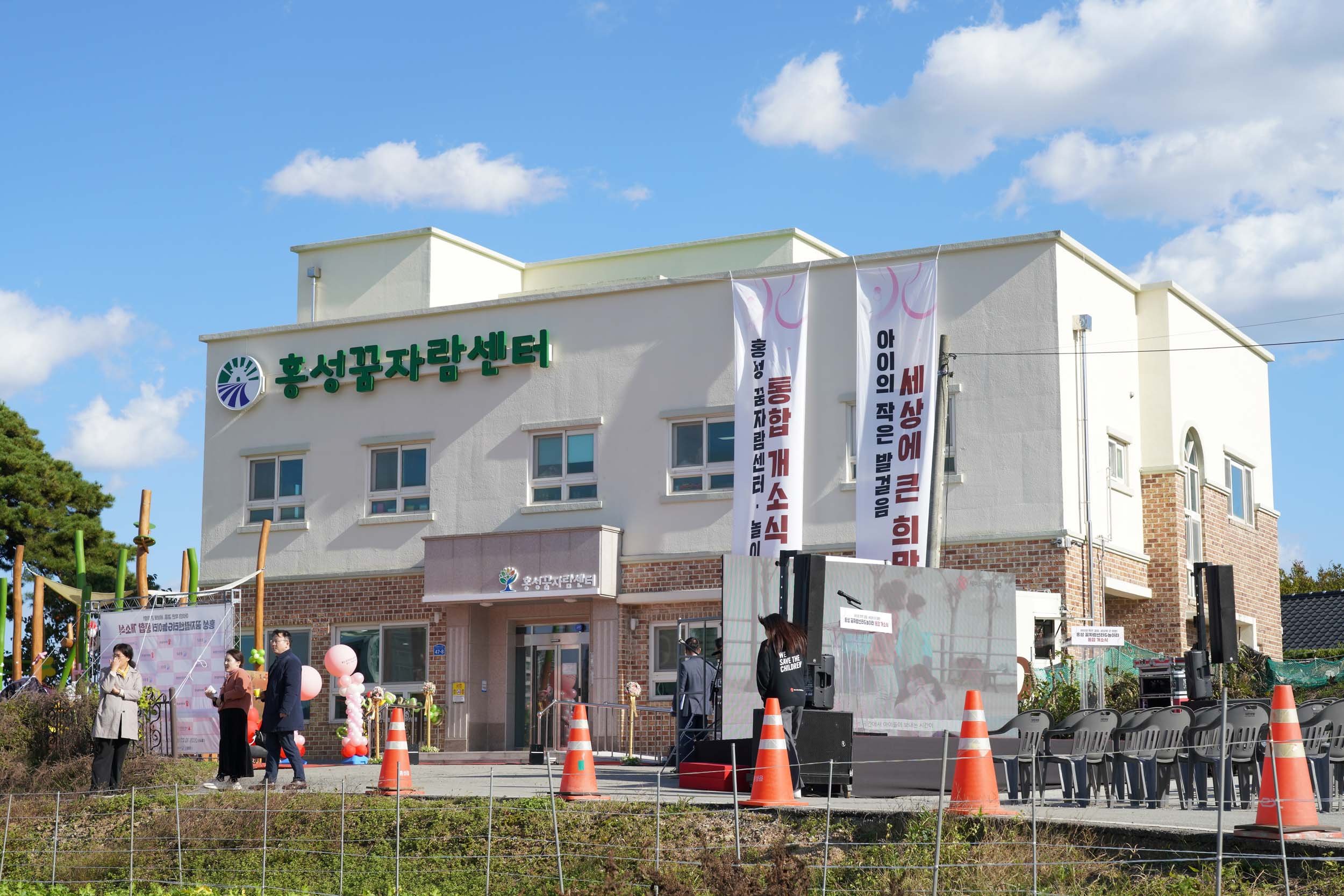 [충청25시] 홍성군은 지난 27일 전국 지자체 최초로 설립한 발달지연 아동 전문치료시설인 ‘홍성꿈자람센터’와 장애·비장애 아동이 함께 놀 수 있는 ‘홍성꿈자람놀이터’통합 개소식을 마쳤다고 밝혔다.