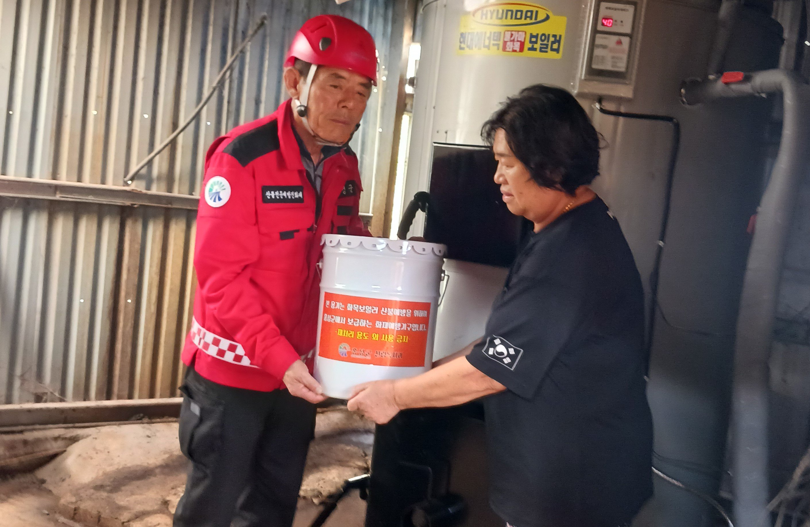 [충청25시] 홍성군이 가을철 산불조심 기간을 맞아 화목보일러 사용 후 부주의한 재처리로 인한 산불 발생을 선제적으로 막기 위해 지난 23일 관내 화목보일러 사용 농가에 ‘재처리 전용 안전 용기’ 371개를 긴급 배부하고 집중적인 산불 예방 계도 활동에 나선다고 밝혔다.