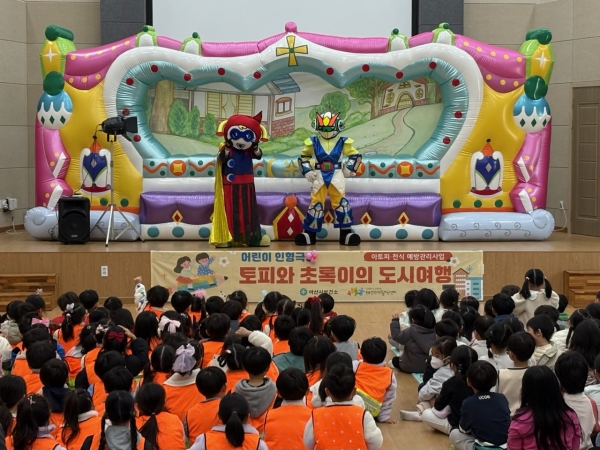 [충청25시] 아산시는 30일 동부건강생활지원센터 다목적 강당에서 지역 내 아토피·천식안심학교를 포함한 미취학 아동 및 유치원·어린이집 등 개소 원아를 대상으로 인형극 ‘토피와 초록이의 도시여행’ 공연을 진행했다고 밝혔다.