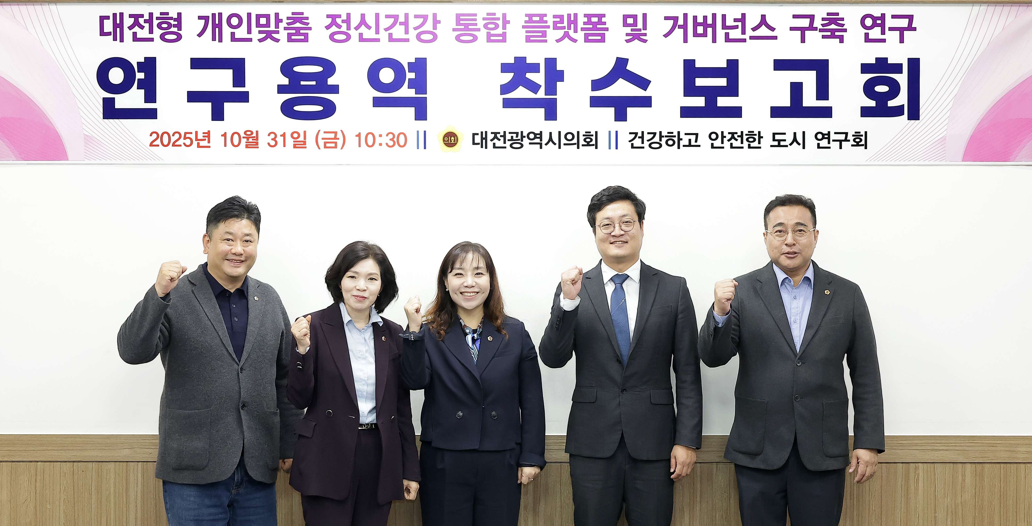 [충청25시] 대전시의회 ‘건강하고 안전한 도시연구회’는 31일 시의회 공감실에서 ‘대전형 개인맞춤 정신건강 통합 플랫폼 및 거버넌스 구축’연구 용역 착수 보고회를 개최했다.