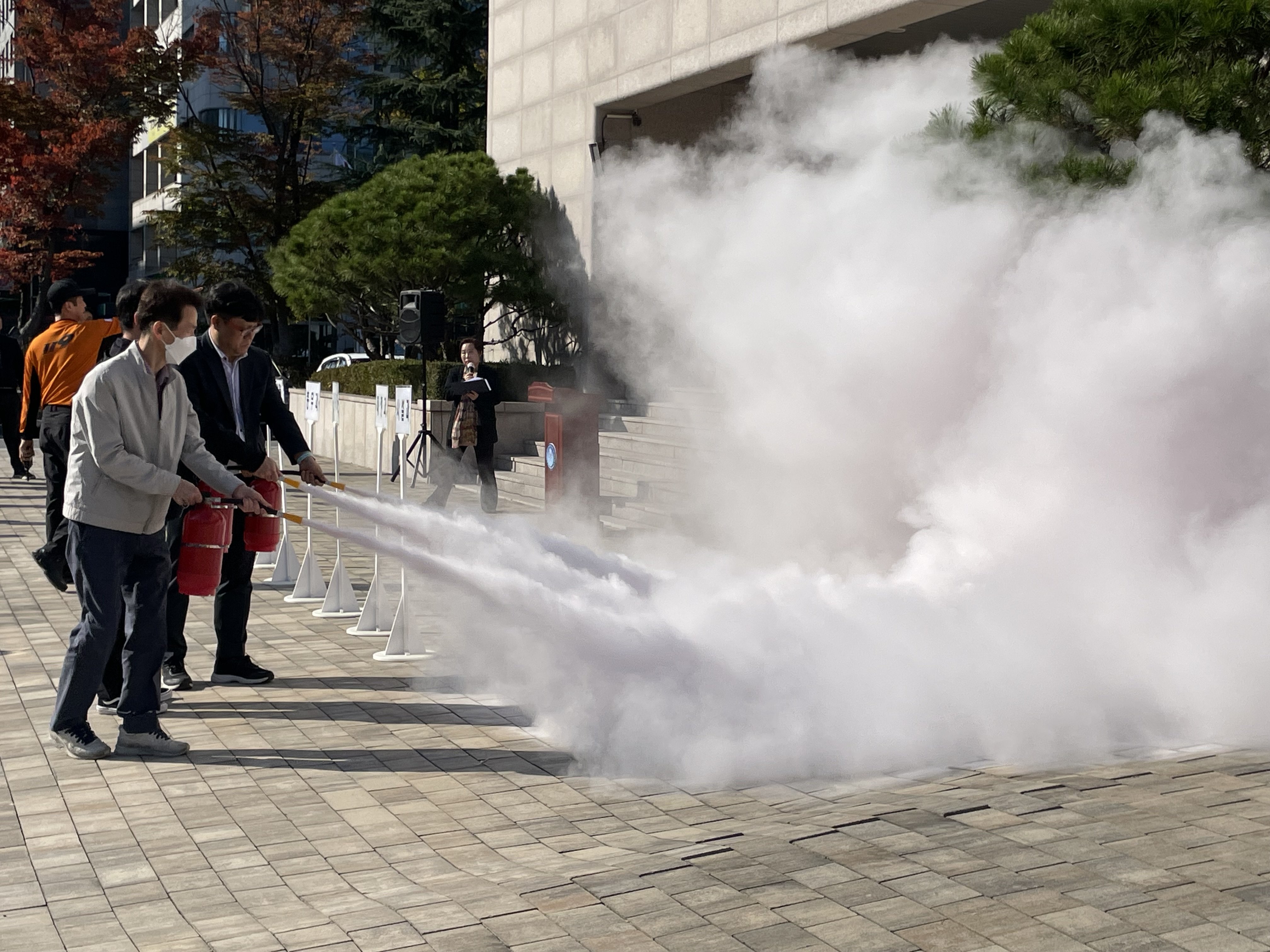 이번 훈련은 청사 내 화재 발생 상황을 가정해 대피 및 초기 진화 절차를 숙달하고 비상상황 시 대응역량을 강화하기 위해 마련됐다.