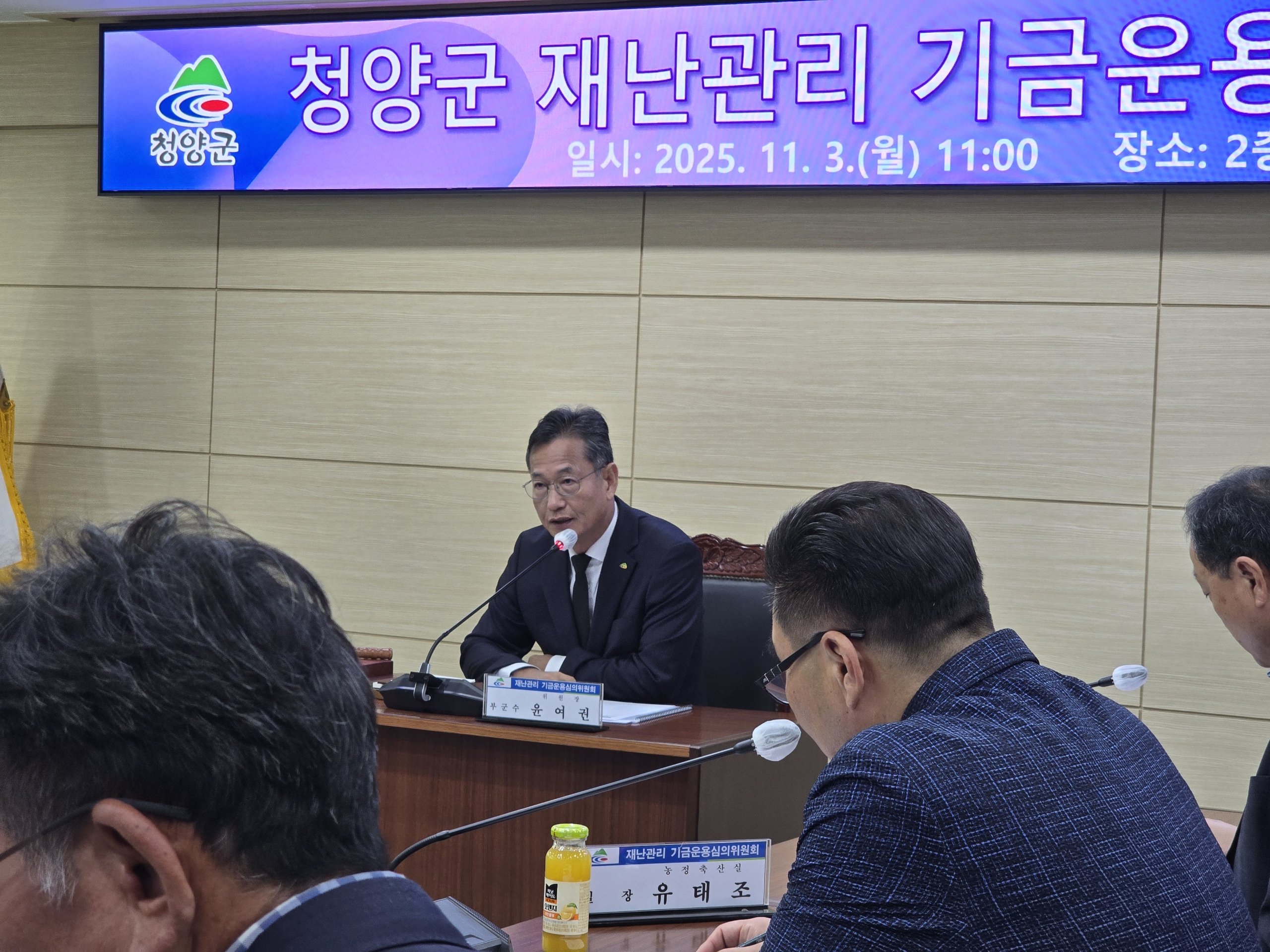 주요 안건으로는 ▲2025년 청양군 재난관리 기금 운용 계획 변경(안)과 ▲2026년 청양군 재난관리 기금 운용 계획(안)을 심의했다.