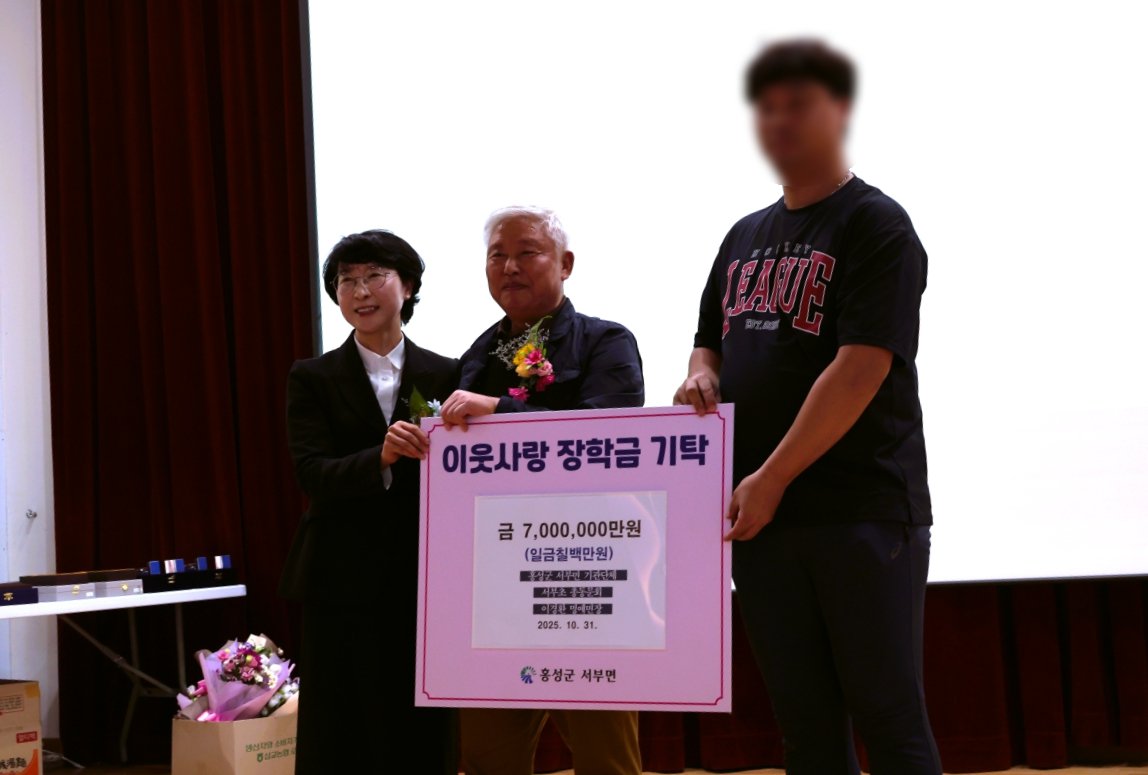 [충청25시] 홍성군 서부면행정복지센터는 지난 31일 서부면 주민자치총회에서 가정형편이 어려운 다자녀가정에 대한 장학금 기탁식을 가졌다고 밝혔다.