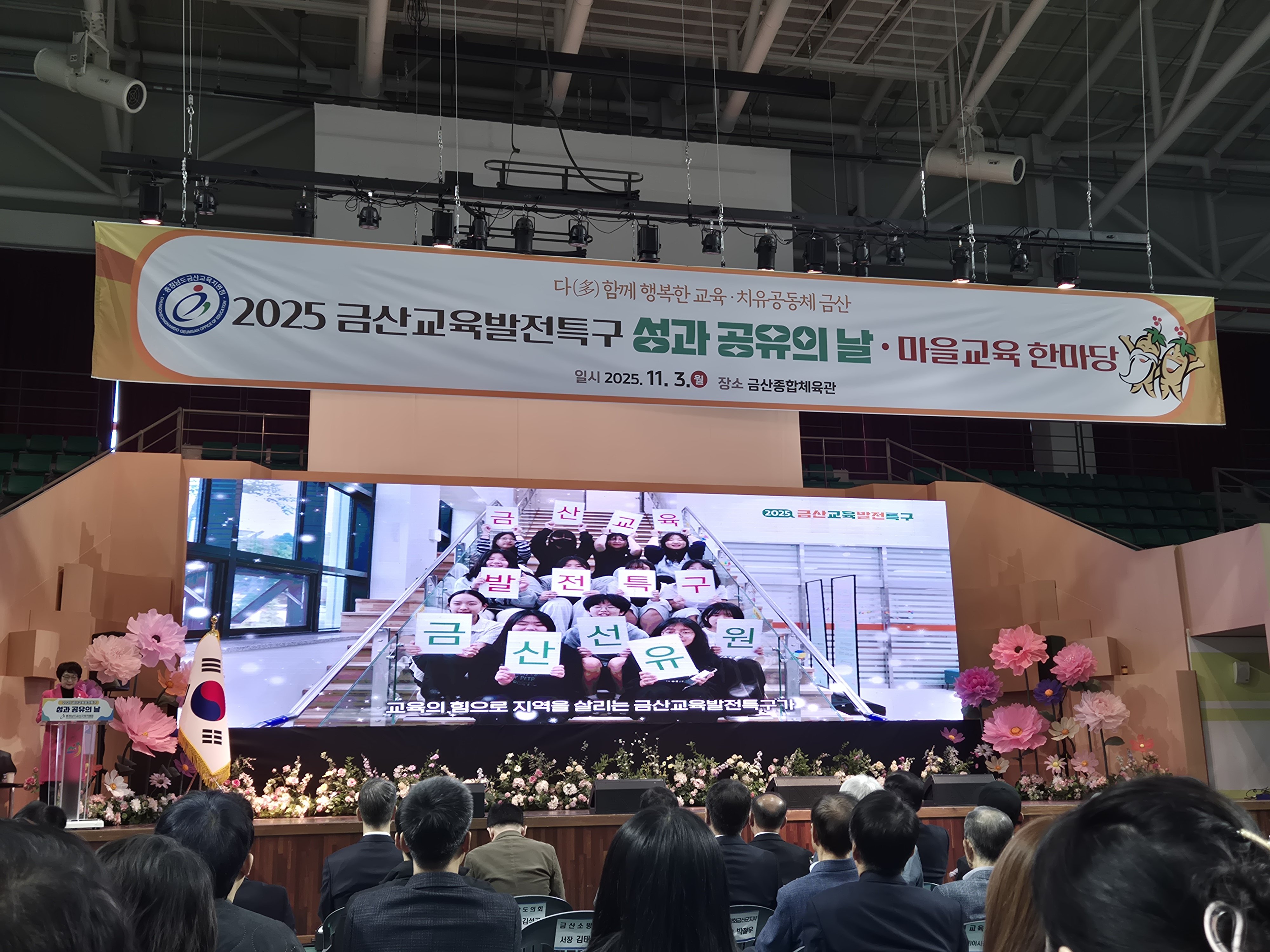 [충청25시] 금산군과 금산교육지원청은 지난 3일 금산종합체육관에서 2025 금산교육발전특구 성과공유의 날 및 마을교육 한마당을 성황리에 마쳤다.