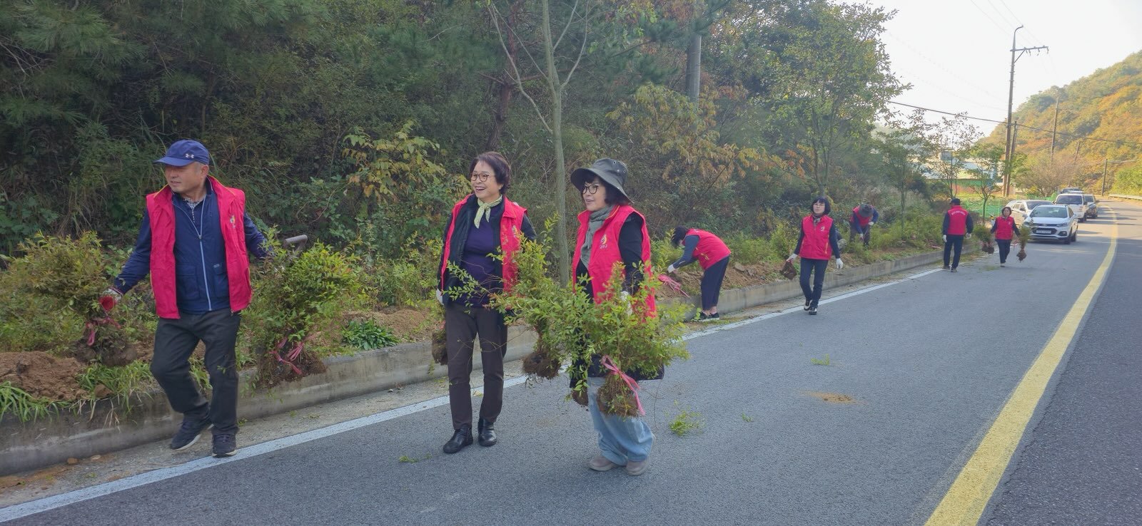 [충청25시] 금산군 제원면주민자치위원회는 지난 3일 주민자치 특화 공모사업의 일환으로 동곡리 신안사로 일원에 조팝나무를 식재하며 ‘조팝나무길’조성에 나섰다.