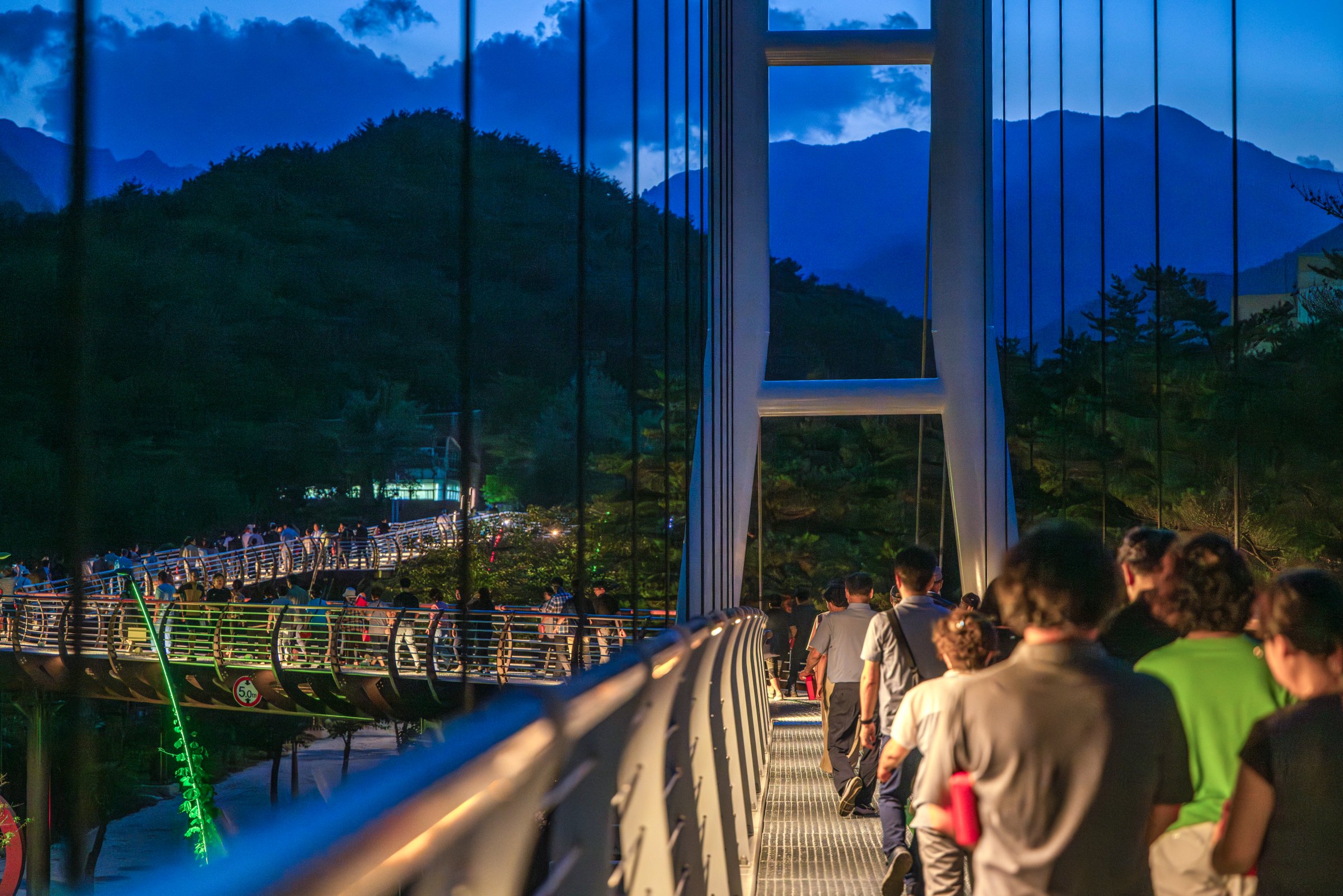 밤이 되면 길이 약 402m의 출렁다리가 화려한 조명으로 빛나고 그 옆에 있는 음악분수와 어우러져 환상적인 풍경을 자아낸다.