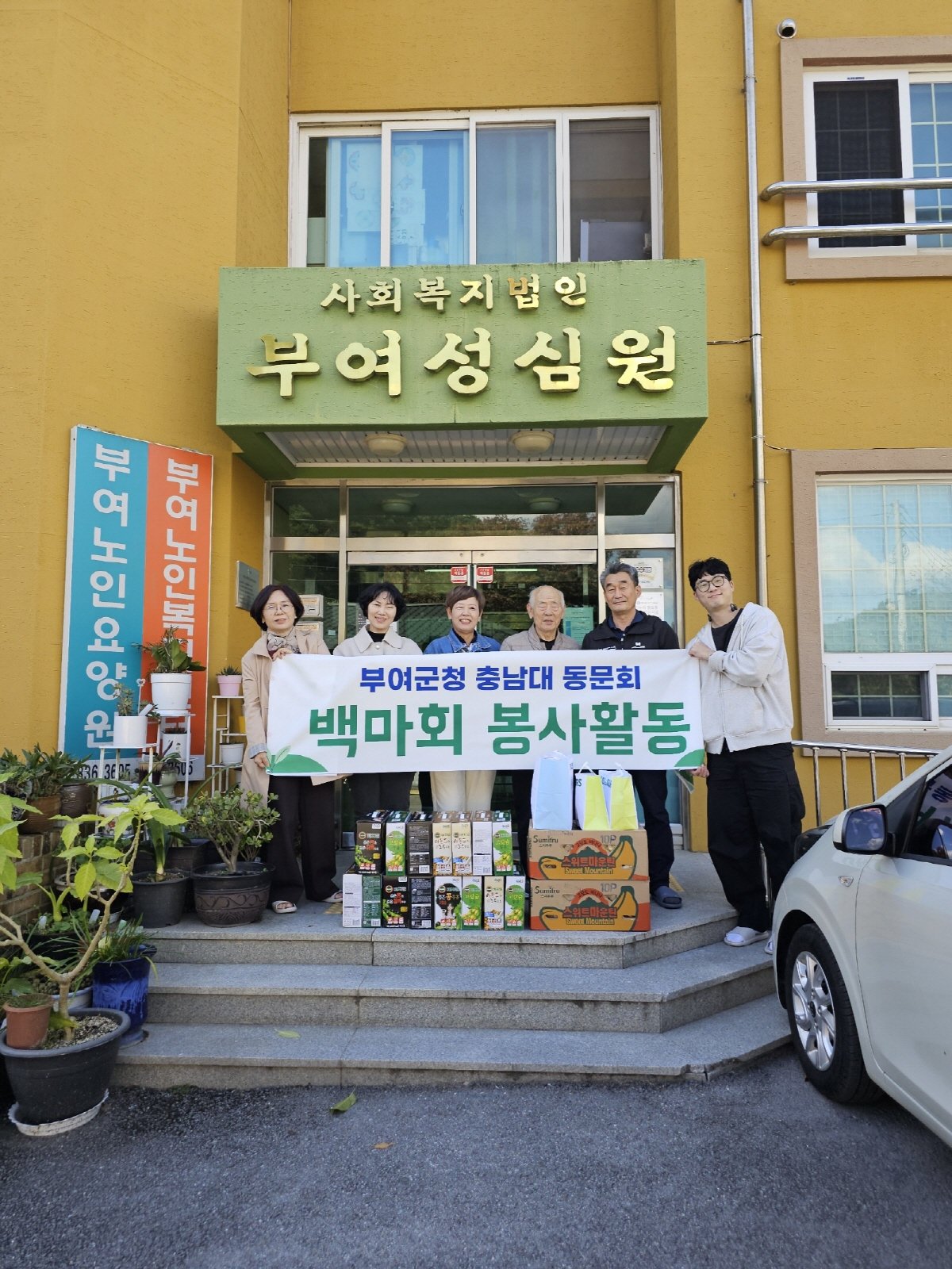 현재 부여군청에서 근무하는 충남대학교 졸업생 100여명이 회원으로 활동하는 부여군백마회는 지역사회 발전을 위한 다양한 봉사활동과 사회공헌 활동을 꾸준히 이어오고 있다.