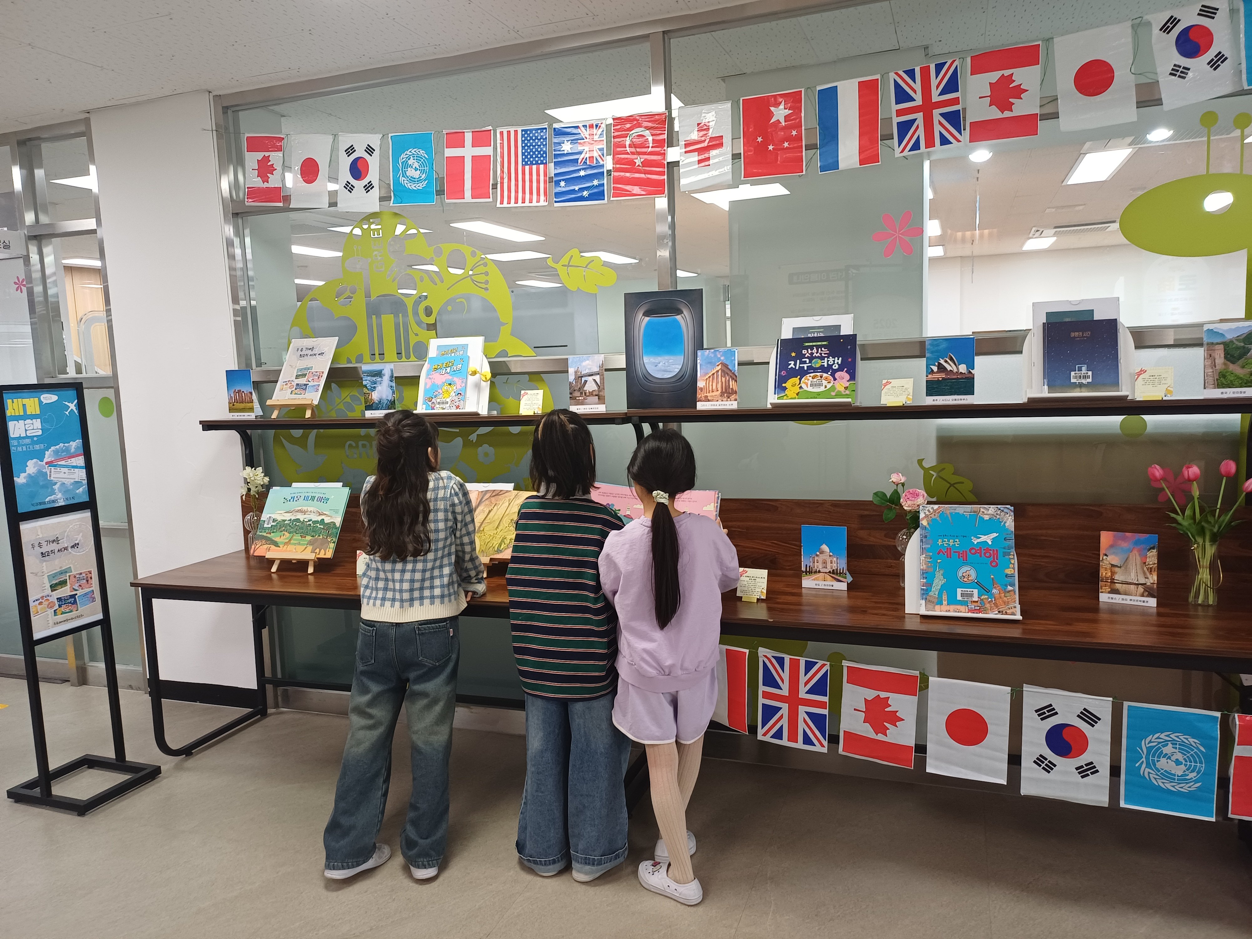아산도서관 북큐레이션 동아리 ‘소북소북’과 함께 기획한 이번 전시에는 ‘어느 멋진 여행’, ‘변기 타고 세계여행’, ‘맛있는 지구여행’등 어린이들의 호기심을 자극하는 작품들로 구성됐다.