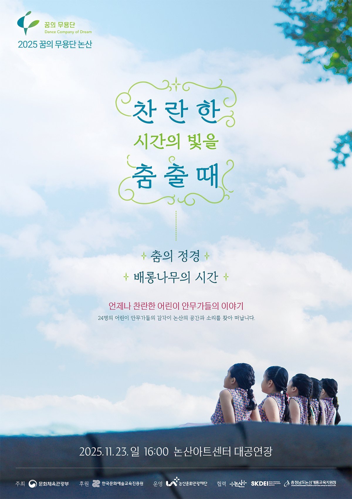[충청25시] 논산문화관광재단이 오는 11월 23일 오후 4시 논산아트센터 대공연장에서 2025 꿈의 무용단 논산 정기공연 ‘찬란한 시간의 빛을 춤출때’를 개최한다고 밝혔다.