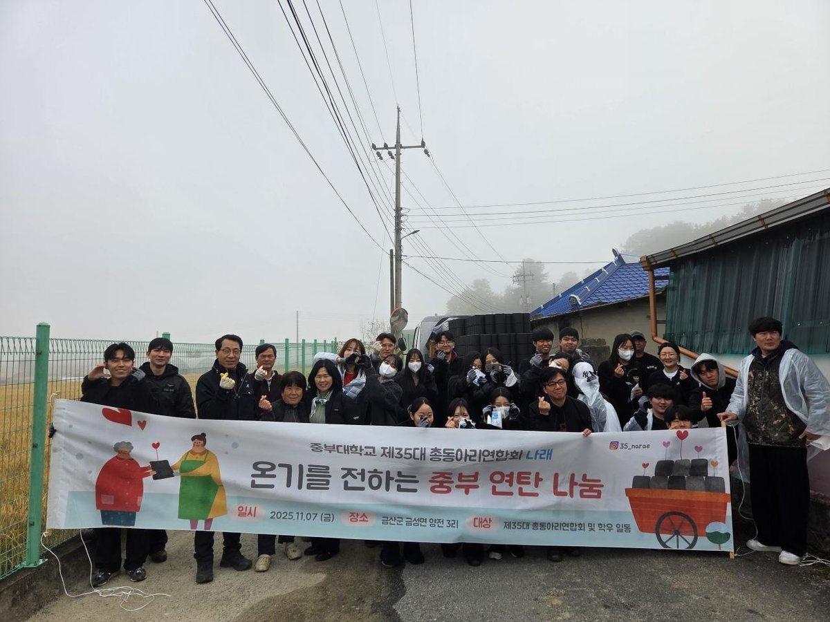[충청25시] 중부대 총동아리연합회는 지난 7일 금산군 금성면 양전3리 마을에서 취약계층가정 대상 사랑의 연탄나눔 봉사를 전개했다.