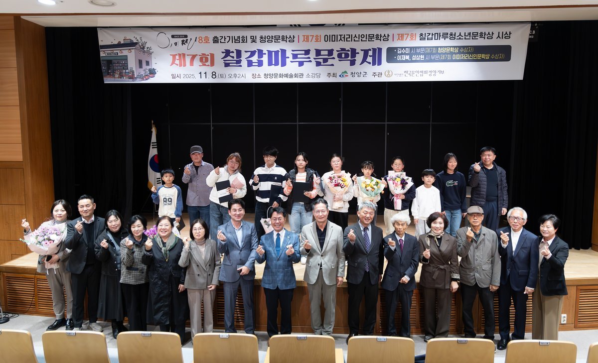 [충청25시] 사단법인 한국문인협회 청양지부가 지난 8일 청양문화예술회관 소공연장에서 제7회 칠갑마루 문학제 시상식과 동인지 ‘이미저리’ 8호 발간 기념회를 열었다.