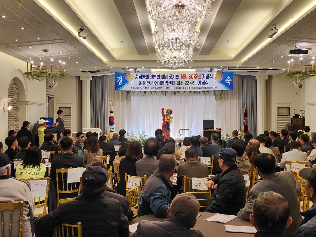[충청25시] 예산군은 지난 10일 더스타웨딩홀에서 ‘충남농아인협회 예산군지회 창립 30주년 기념식’과 ‘예산군수어통역센터 개소 22주년 기념식’을 개최했다고 밝혔다.