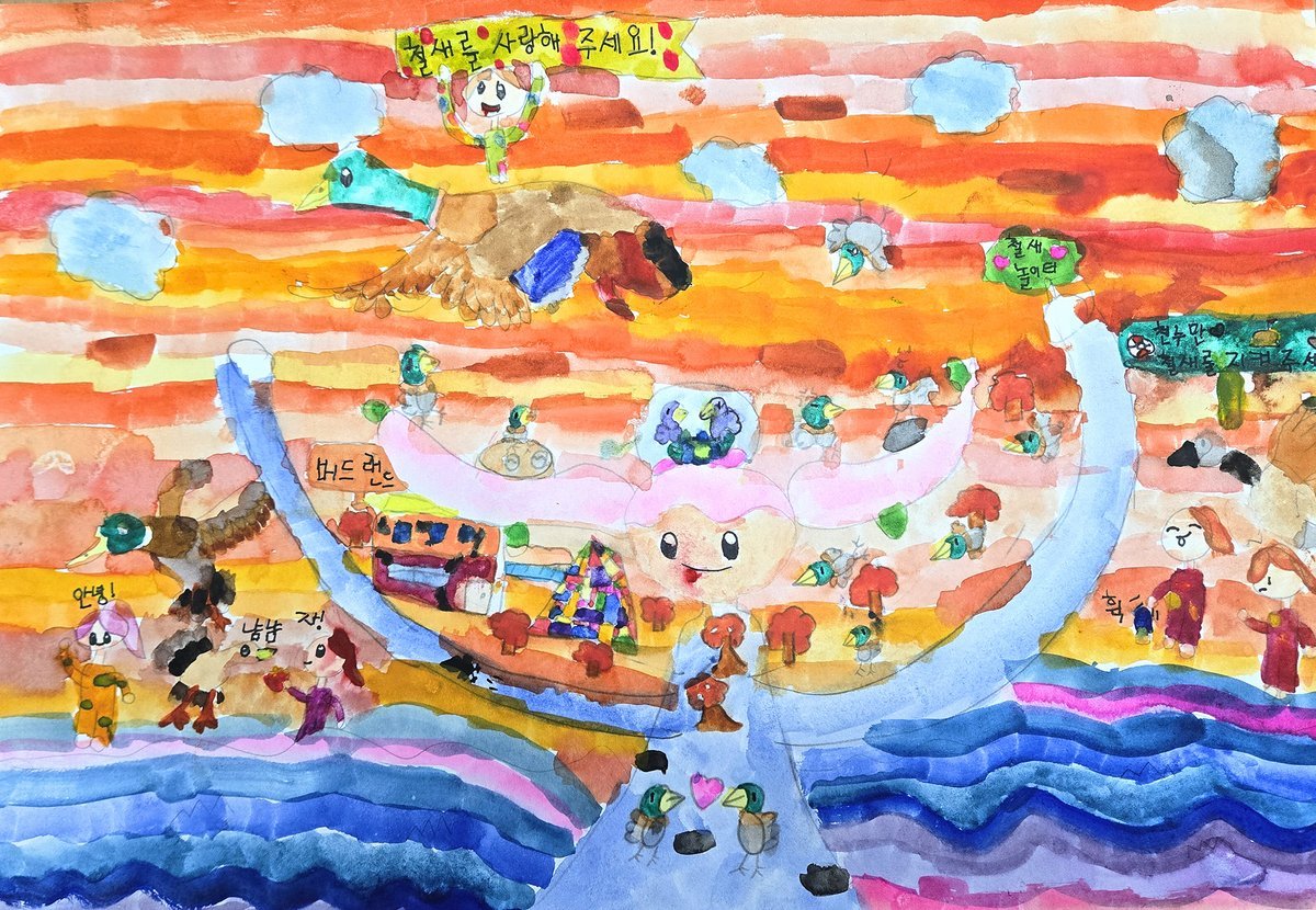 대상은 서산 서남초등학교 송민지 학생의 작품 ‘철새와 우리가 천수만에서 함께 살아가는 세상을 꿈꾸며’가 차지했다.