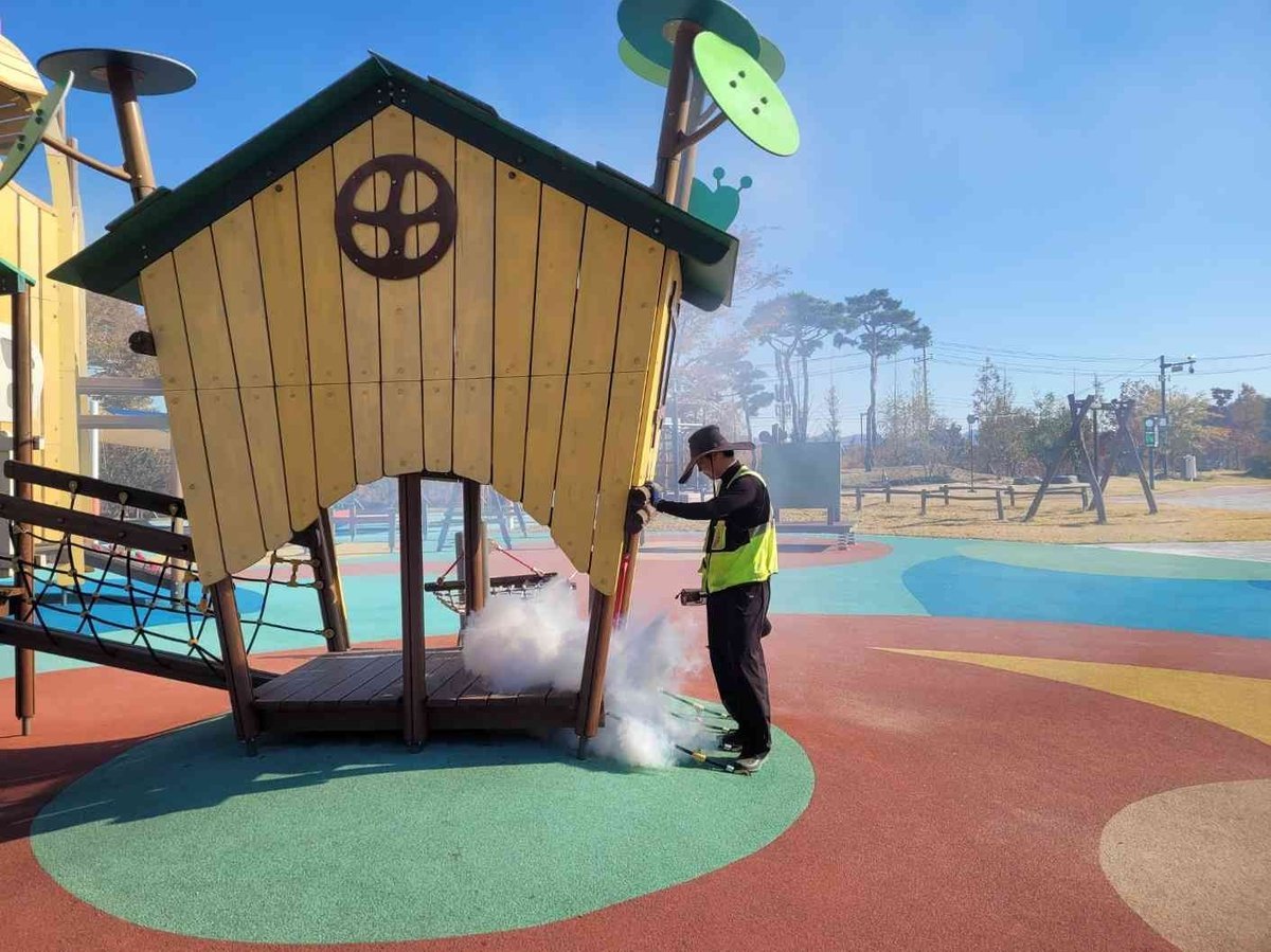 또, 지난 10일 이슬공원 내 모래 놀이터 및 놀이시설에서 추진된 스팀 소독 작업을 통해 위생적인 놀이환경을 만들었다.