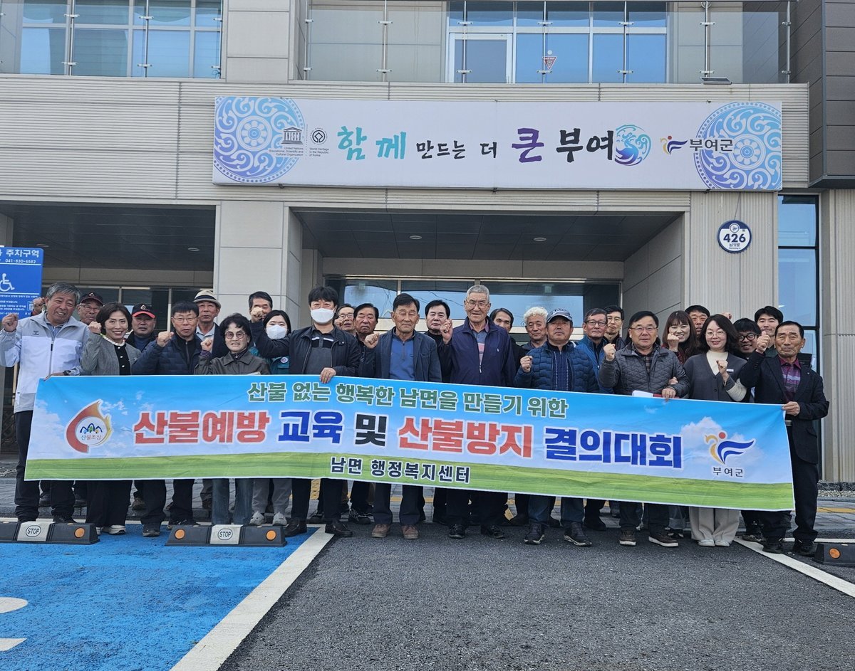 [충청25시] 부여군 남면 은 지난 13 일 본격적인 가을철 산불 조심 기간을 맞아 ‘ 산불 제로 안전한 남면 만들기 ’를 위해 산불 예방 결의대회를 가졌다.