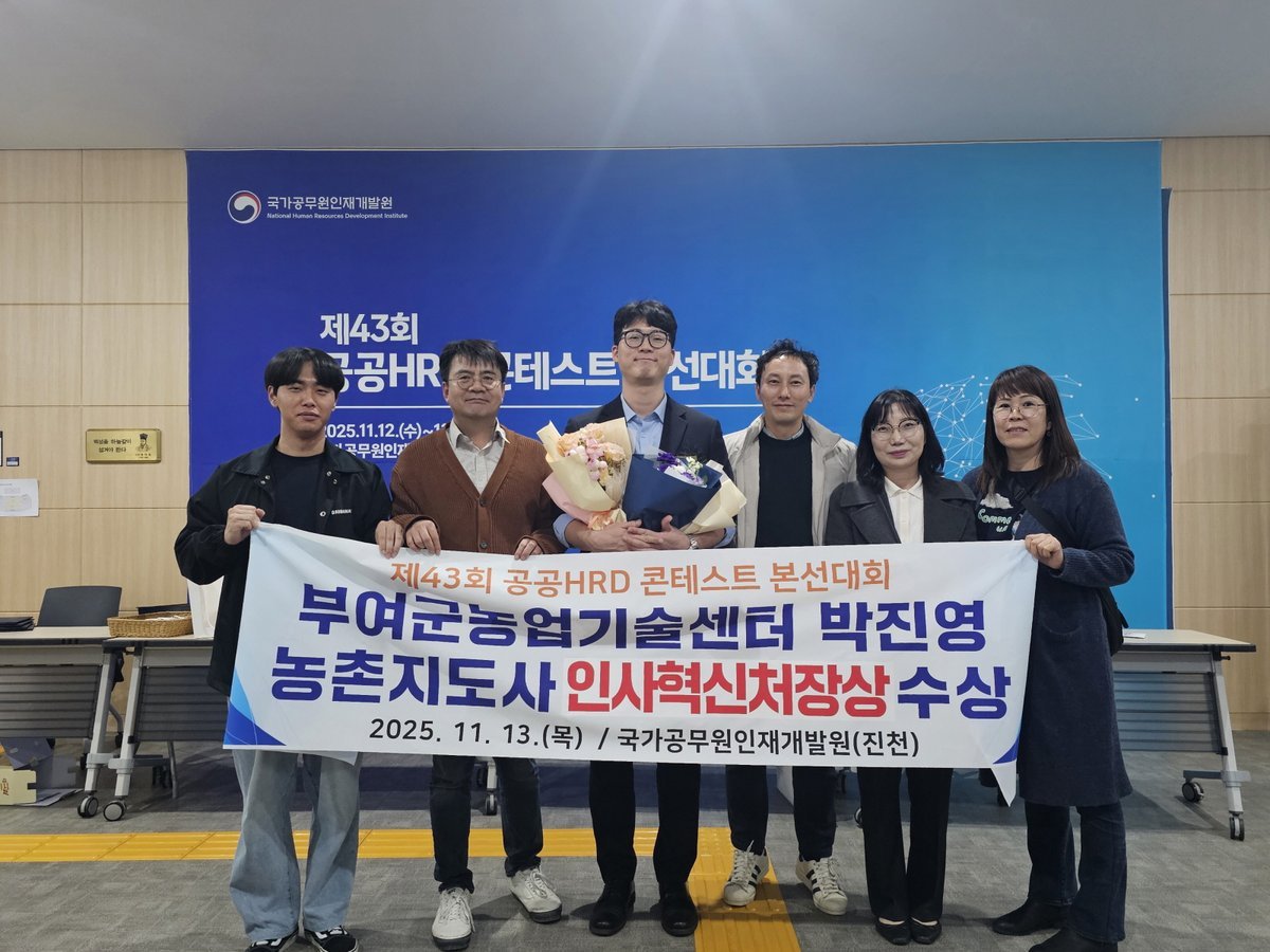 [충청25시] 부여군농업기술센터는 국가공무원인재개발원이 주관한 ‘제43회 공공HRD 콘테스트’교수 학습 분야에서 박진영 지도사가 ‘인사혁신처장상’을 수상했다고 18일 밝혔다.