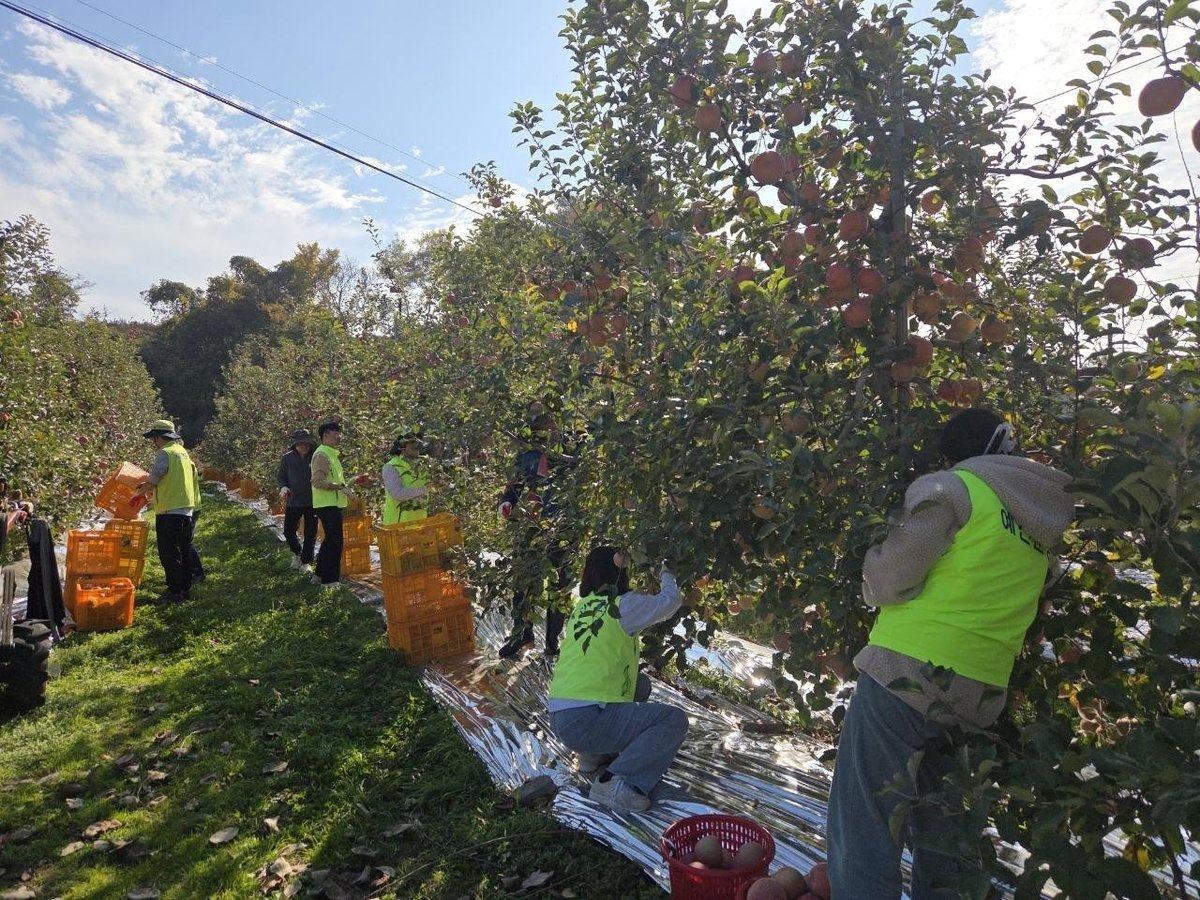 이번 일손 돕기는 농번기 인력난 해소를 위해 추진됐으며 직원들은 사과밭에서 사과를 하나씩 정성껏 수확하면서 농가에 일손을 보탰다.