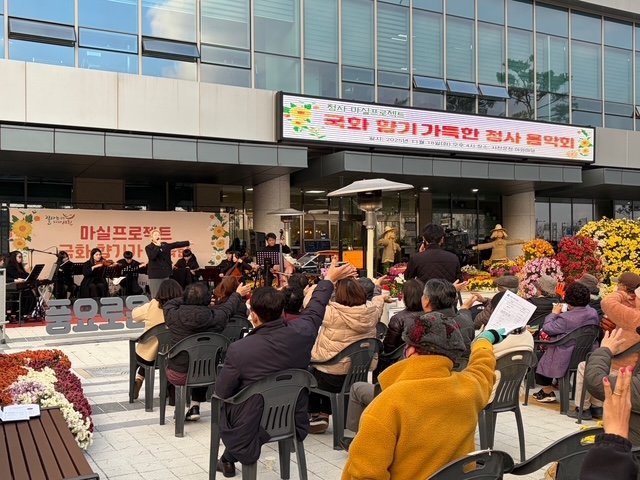 [충청25시] 서천군은 지난 18일 군청사 야외에서 ‘청사 마실 프로젝트’의 아홉 번째 프로그램인 국화 향기 가득한 청사 음악회를 성황리에 개최했다.