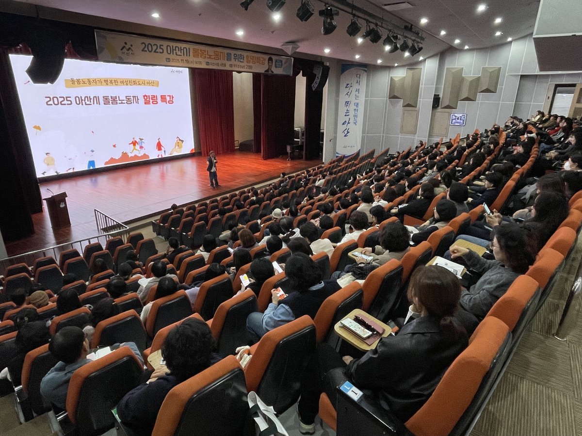 [충청25시] 아산시는 19일 시청 시민홀에서 관내 돌봄노동자 300여명이 참석한 가운데 ‘2025년 아산시 돌봄노동자 힐링특강’을 개최했다.